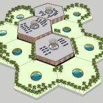 Imagens 3D do projeto com seus suportes de plantas lindamente desenhados e seu desenho fractal. Fonte: https://armarchitecture.com.au/projects/adelaide-festival-plaza-precicinct-masterplan/
