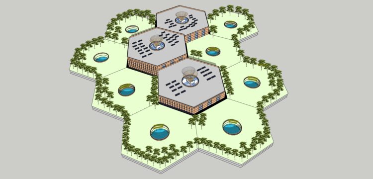 É interessante notar como os designers incorporaram a ideia da geometria fractal em partes do padrão de design do piso e também nos suportes das plantas tão lindamente desenhados e em harmonia com a paisagem circundante.